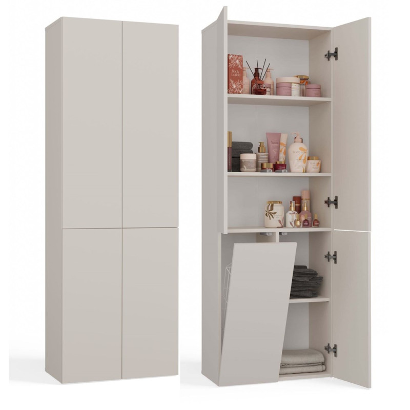 - 4 drzwi (za 3 drzwiami półki, za 1 drzwiami kosz na pranie/bieliznę)