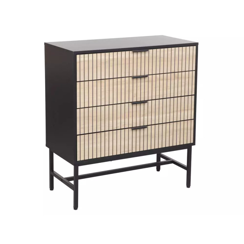 Komoda Mago K2 to stylowy i funkcjonalny mebel, który doskonale wpisuje się w nowoczesne oraz loftowe aranżacje wnętrz. Połączenie blatu z płyty laminowanej w kolorze dębu z czarnym matem oraz metalowego stelaża w kolorze czarnym nadaje komodzie elegancki, industrialny charakter. Smukła forma i wysokie nóżki sprawiają, że mebel prezentuje się lekko, a jednocześnie zapewnia wygodne przechowywanie.