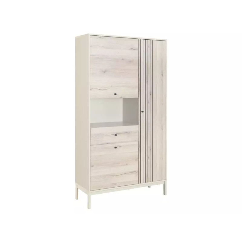 Regał Frost R1 – nowoczesny regał off white z akcentem dębu alpejskiego