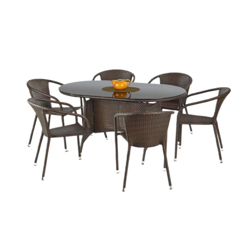 Blat stołu wykonany został z połączenia szkła i rattanu syntetycznego, co nadaje mu wyjątkowego charakteru i stylowego wyglądu. Wymiary blatu sprawiają, że jest to idealny wybór dla sześcioosobowych spotkań na świeżym powietrzu.